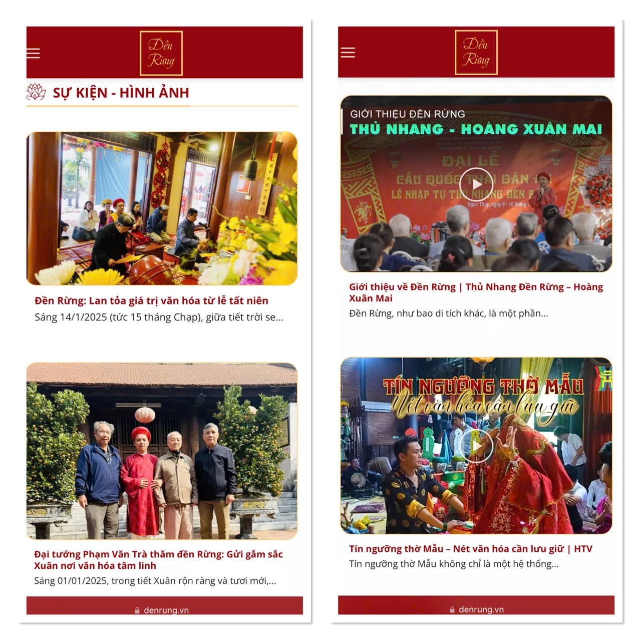 Không dừng lại ở đó, website còn là kho tàng thông tin số hóa về lịch sử đền, tín ngưỡng thờ Mẫu, các hoạt động văn hoá tín ngưỡng, xã hội, cùng công nghệ thực tế ảo VR360 – cho phép bất kỳ ai, dù ở phương xa, vẫn có thể “dạo bước” trong không gian linh thiêng của đền Rừng. Chỉ với một chiếc điện thoại hoặc máy tính, người dùng có thể ngắm nhìn từng mái cong, pho tượng, án thờ – như đang hiện diện trực tiếp giữa lòng đền thiêng.