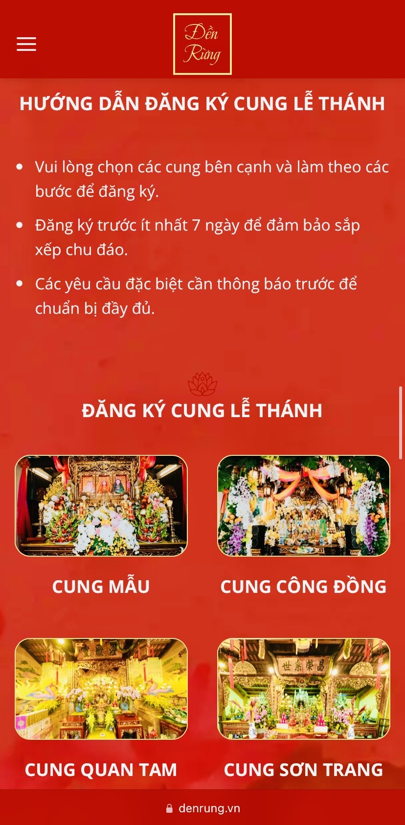Truyền thống và hiện đại tưởng chừng là hai đường thẳng song song, nhưng ở Đền Rừng, chúng đang hoà quyện một cách nhịp nhàng. Với nền tảng số hóa, thanh đồng từ khắp mọi miền nay có thể đăng ký cung hầu trực tuyến – một cách làm mới đầy nhân văn và tiện ích. Chỉ cần truy cập website, người hành lễ có thể lựa chọn cung hầu, giờ hầu một cách minh bạch, nhanh chóng, mà không cần gọi điện hay đến trực tiếp.