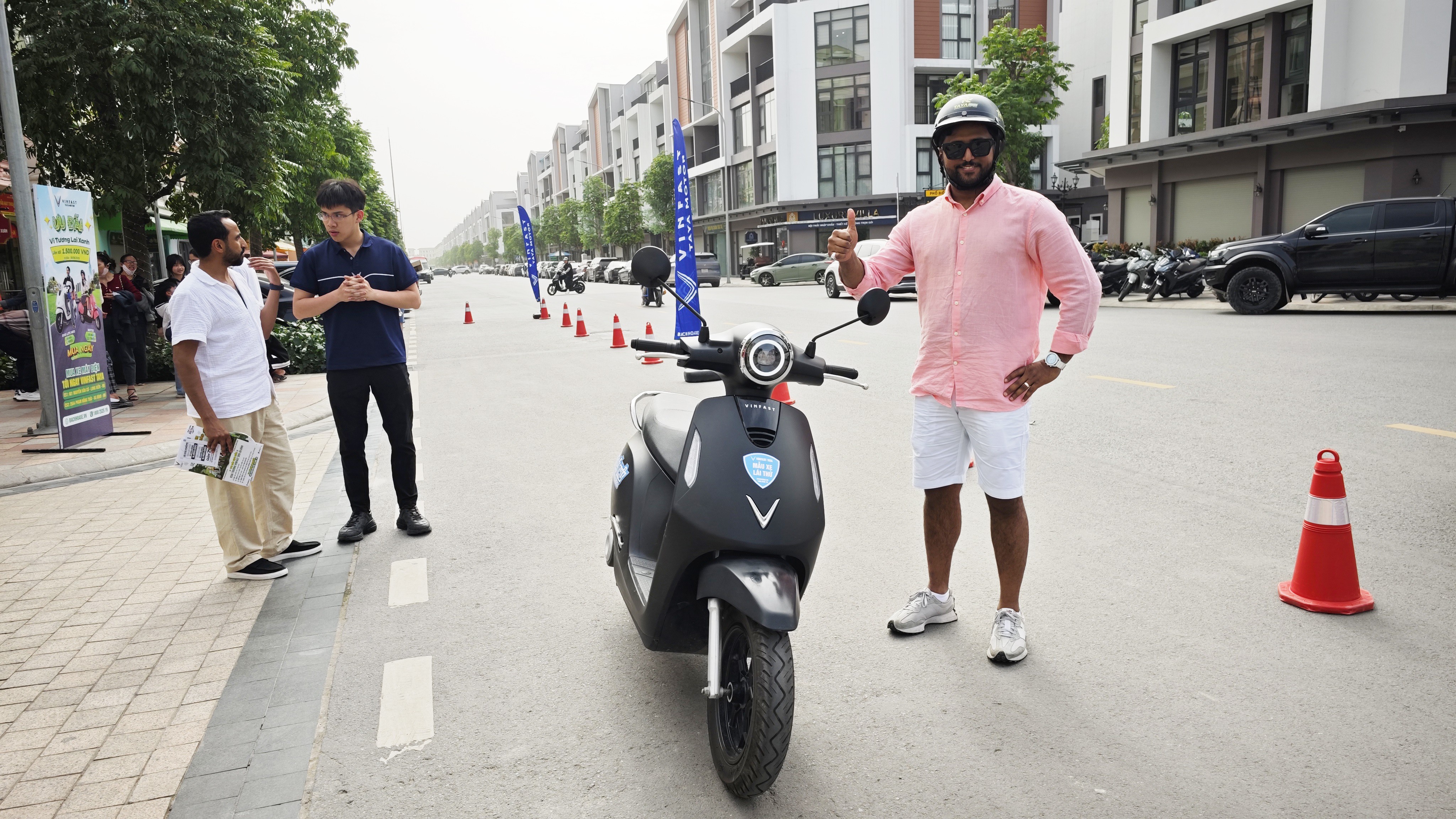 Không chỉ khách Việt, nhiều du khách nước ngoài có mặt tại Ocean City trong ngày 13/4, xem và thử xe VinFast không khỏi trầm trồ. “Thật tuyệt! Tôi muốn có một chiếc xe này ở quê hương của mình” – anh Saleh, du khách Saudi Arab nói khi được đi thử xe máy điện VinFast Evo Neo.