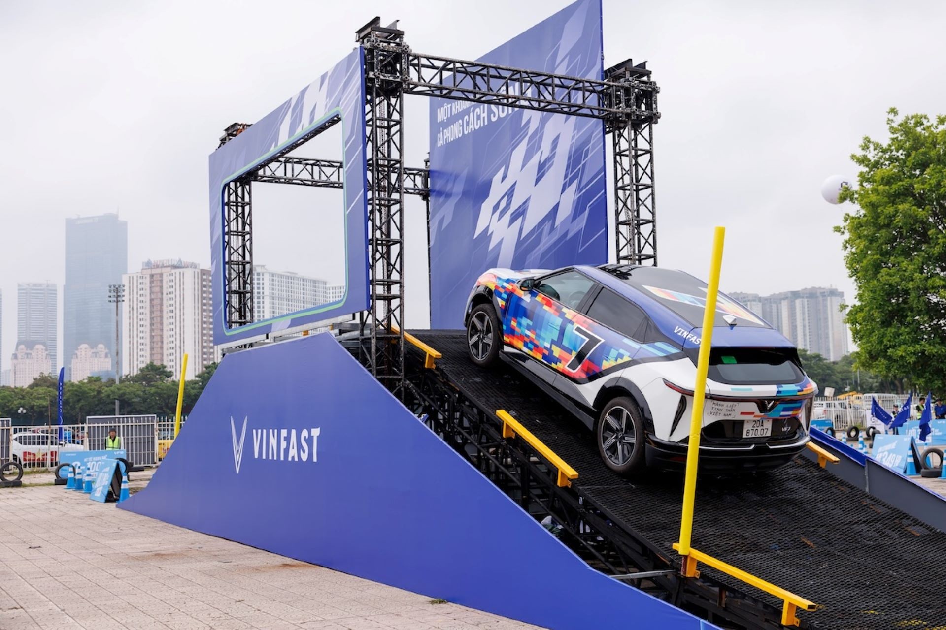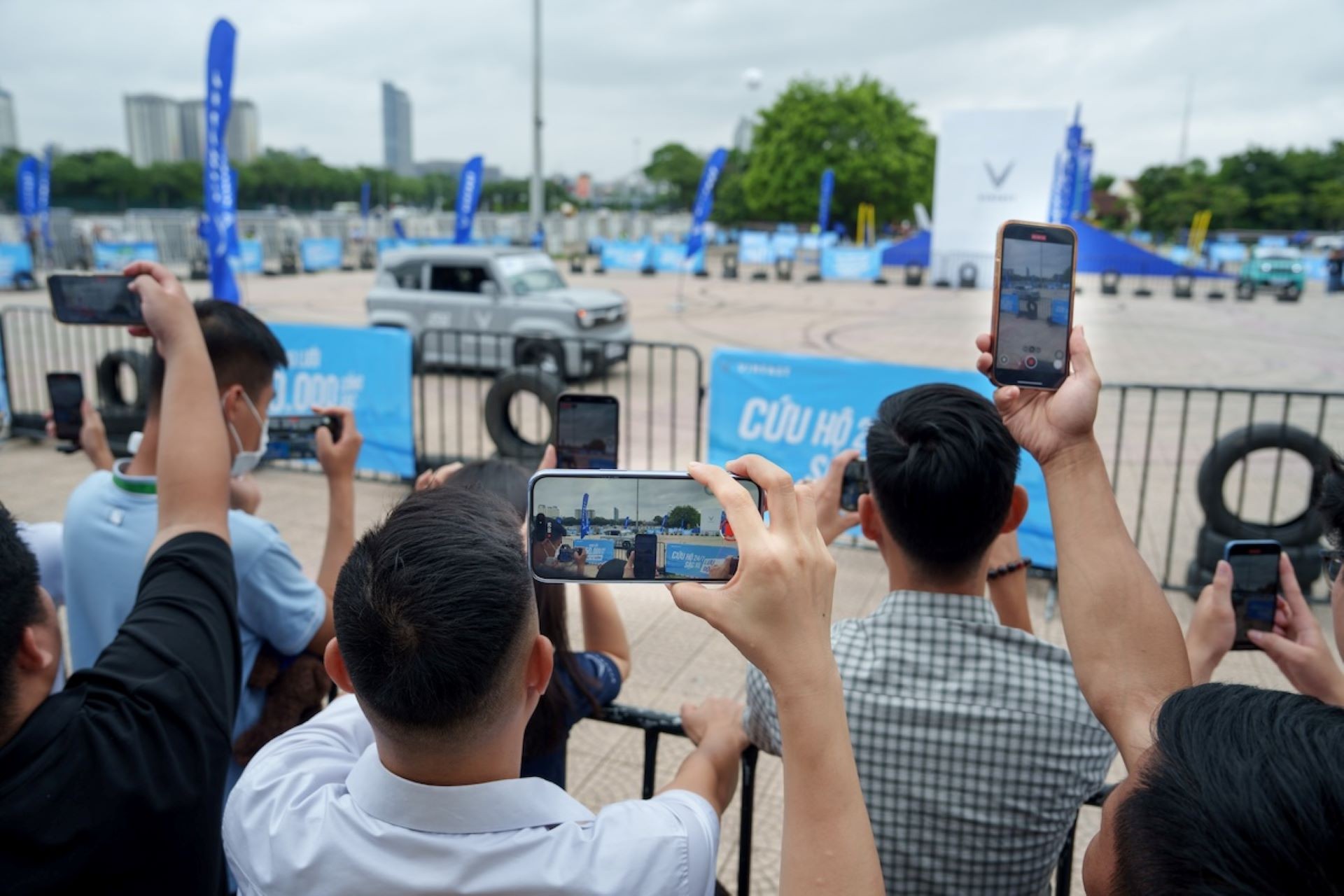 Đường lái thử của VinFast tại khu vực sân vận động Mỹ Đình cũng là một trong những nơi nóng nhất của sự kiện. Tại đây, khách đăng ký được trải nghiệm chuyên sâu với xe điện VinFast trên sa hình đặc biệt, dưới sự hướng dẫn của các chuyên gia.