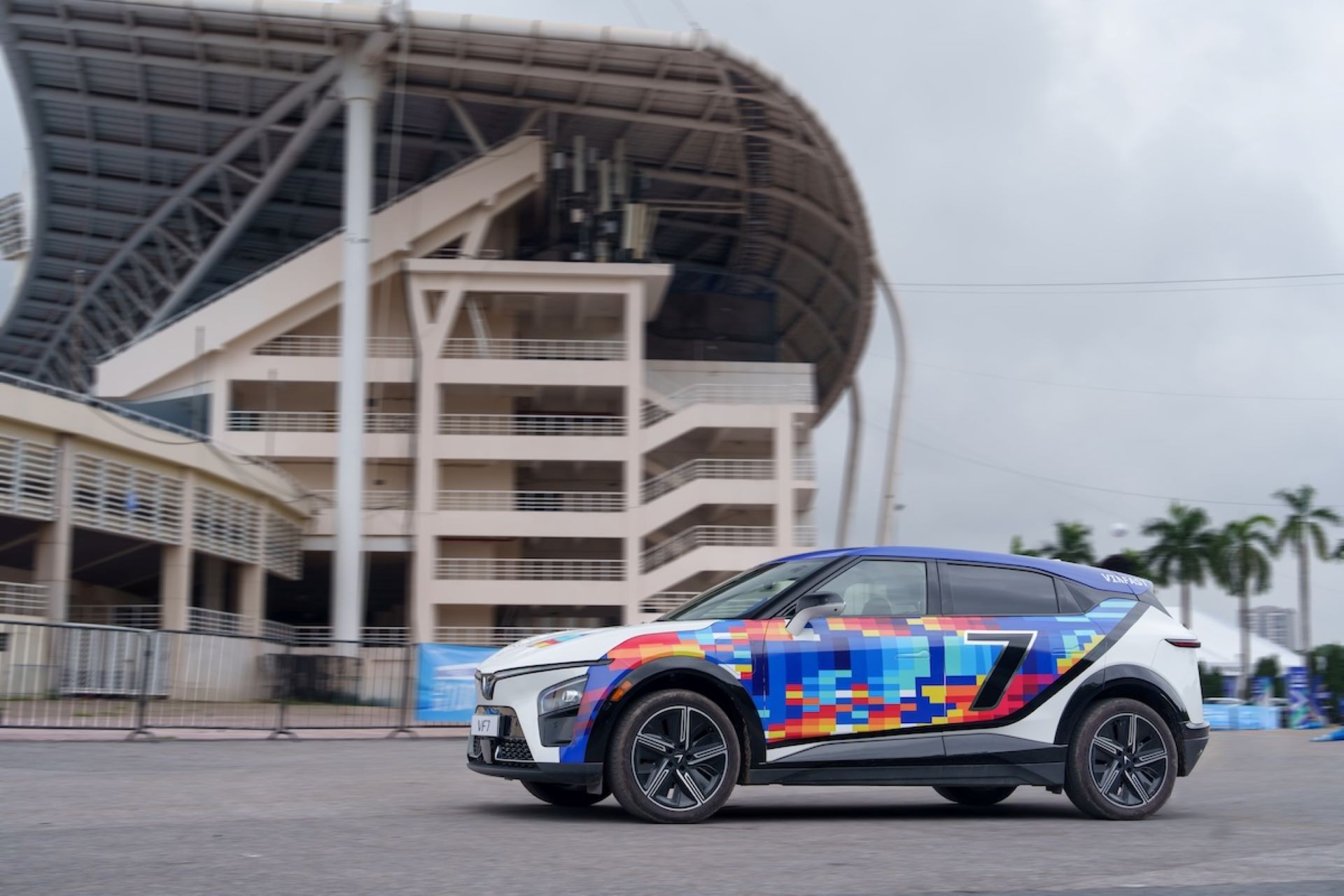 Không khí sự kiện tiếp tục bùng nổ với màn drift đầy kỹ thuật với VF 3 do các drifter hàng đầu của đội D1VN Team thực hiện. Trong tiếng hò reo không ngớt từ khán giả, chiếc mini car của VinFast liên tục rê bánh, đánh lái, ôm cua gắt và quay đầu đầy điệu nghệ, khiến cả khu vực biểu diễn trở nên náo nhiệt.