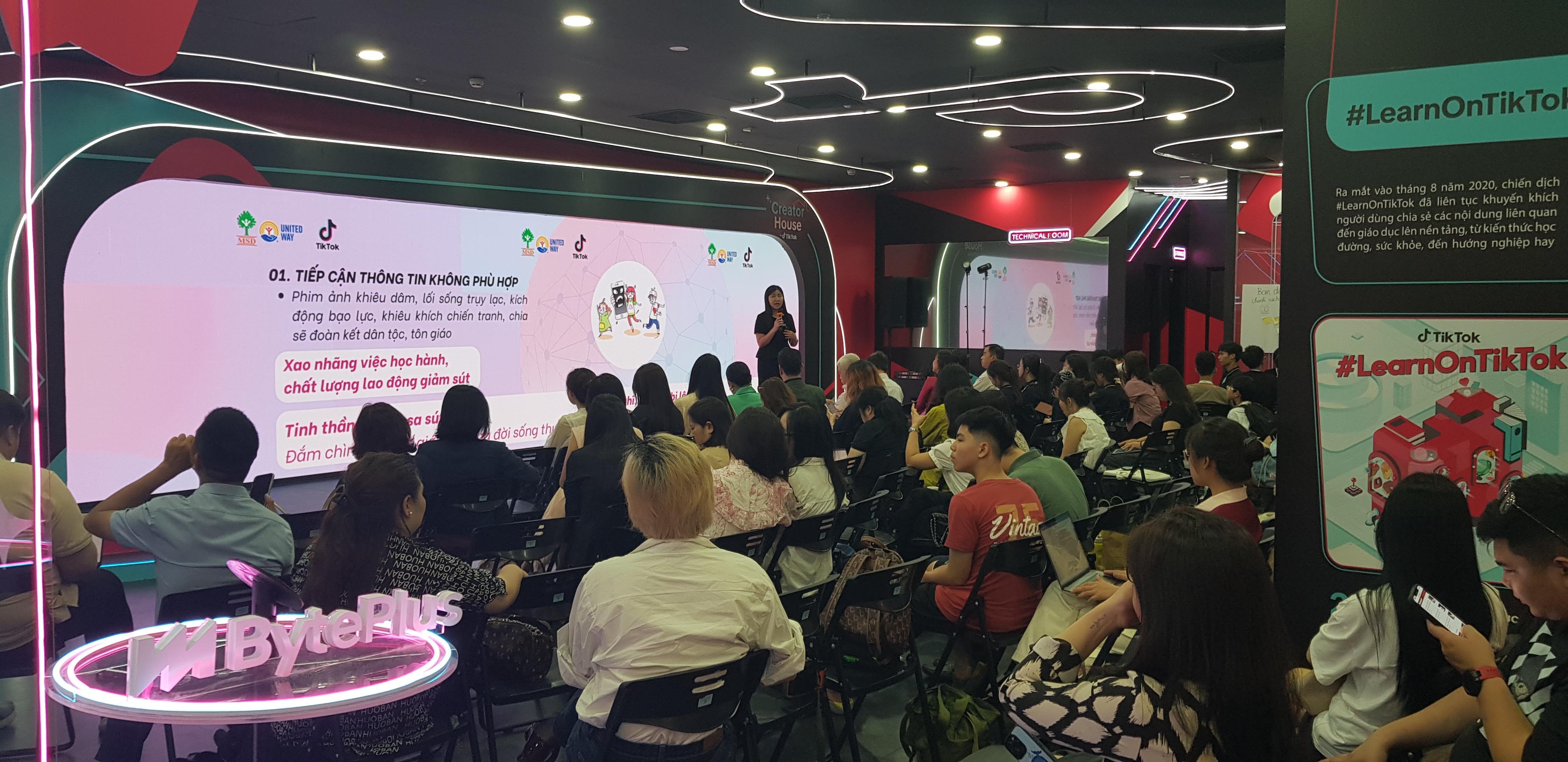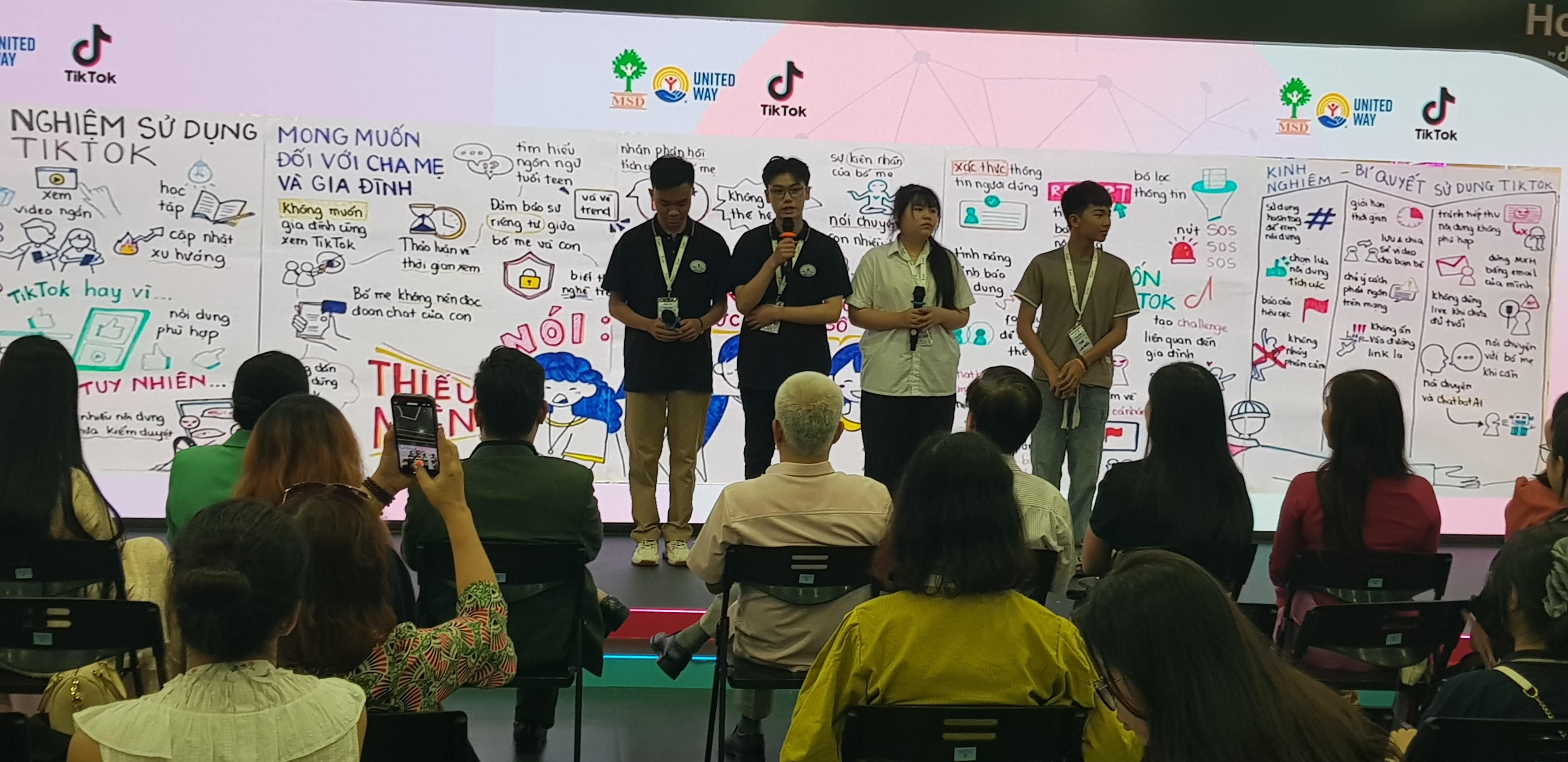 Gần 50 thiếu niên được tham gia thảo luận về những trải nghiệm, bao gồm các khó khăn, thách thức và những lợi ích khi tham gia trên các nền tảng số, trong đó có bao gồm việc sử dụng nền tảng TikTok. Các em chia sẻ về niềm vui sáng tạo, giải trí, học tập từ nền tảng này, và cũng không ngần ngại đưa ra các góp ý và các yêu cầu cho nền tảng cải thiện tốt hơn việc đảm bảo các trải nghiệm an toàn, lành mạnh của các em. Các em nhấn mạnh rằng “được lắng nghe” là điều giúp các bạn cảm thấy an toàn và có trách nhiệm hơn khi sử dụng Tiktok. “Chúng em không cần bị kiểm soát, chúng em cần được tin tưởng, hướng dẫn và đồng hành.”