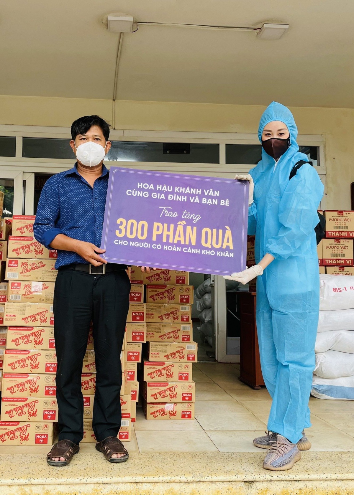 Toàn bộ số quà do chính Hoa hậu Khánh Vân cùng gia đình vận động bạn bè, người thân quyên góp được. Trước đó, ngay sau khi vừa hoàn thành tự cách ly tại nhà sau khi từ Mỹ về, Hoa hậu Khánh Vân và tổ chức Hoa hậu Hoàn vũ Việt Nam đã ủng hộ 200 phần quà, tổng trị giá 60 triệu đồng cho bà con lao động nghèo, khuyết tật bán vé số.