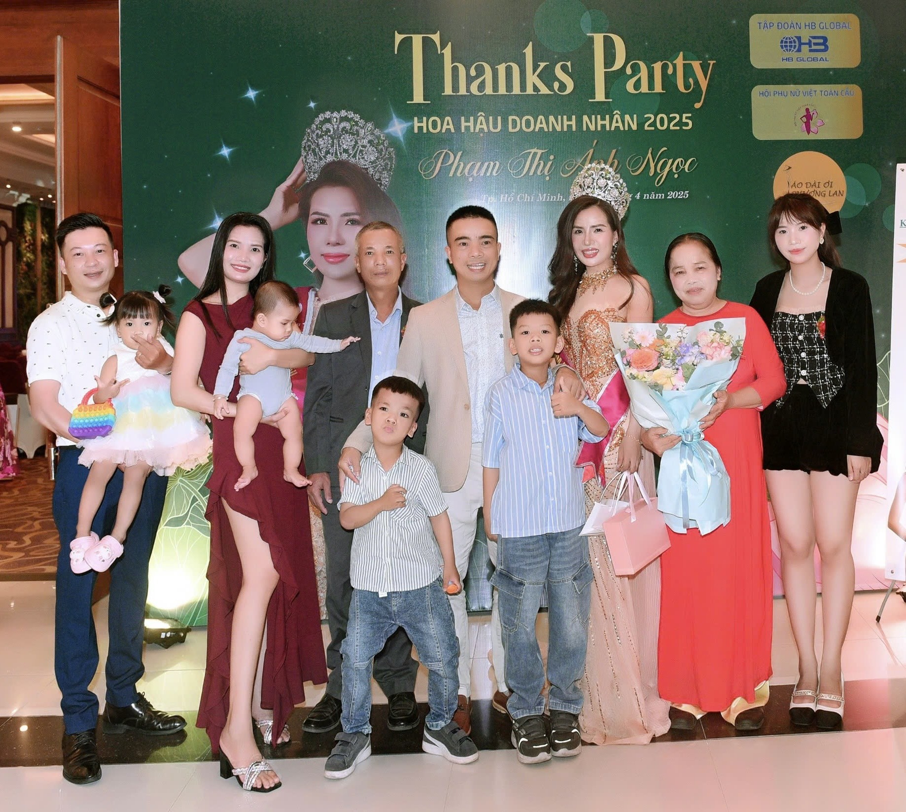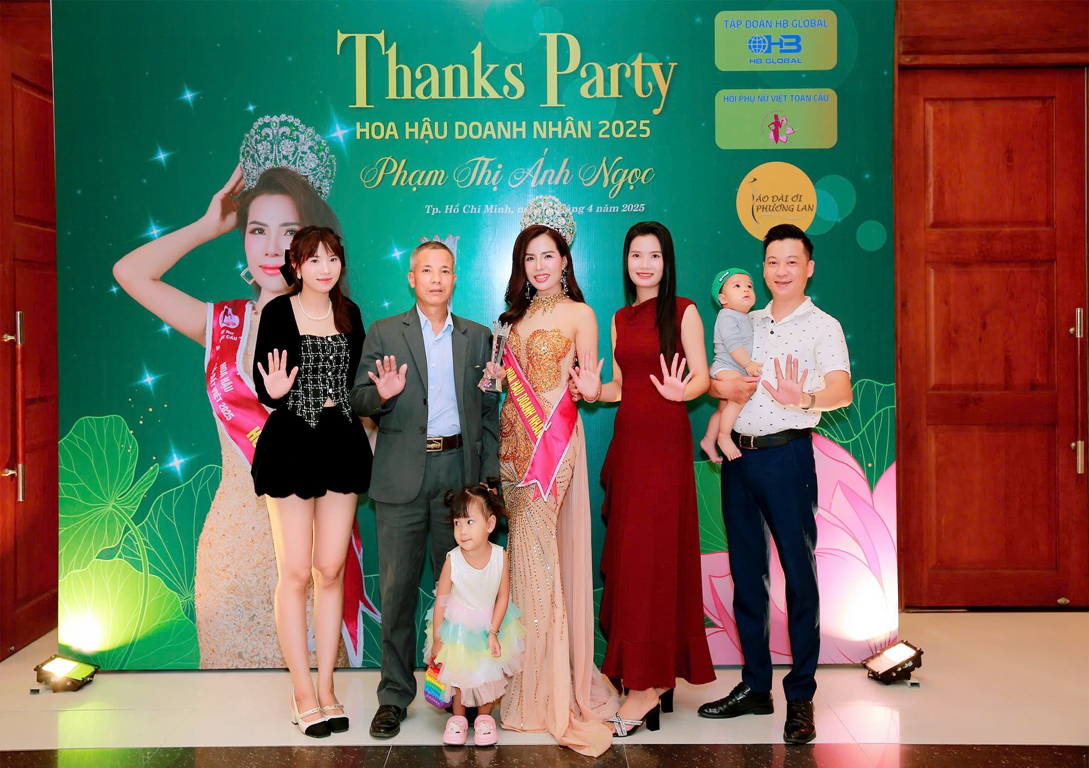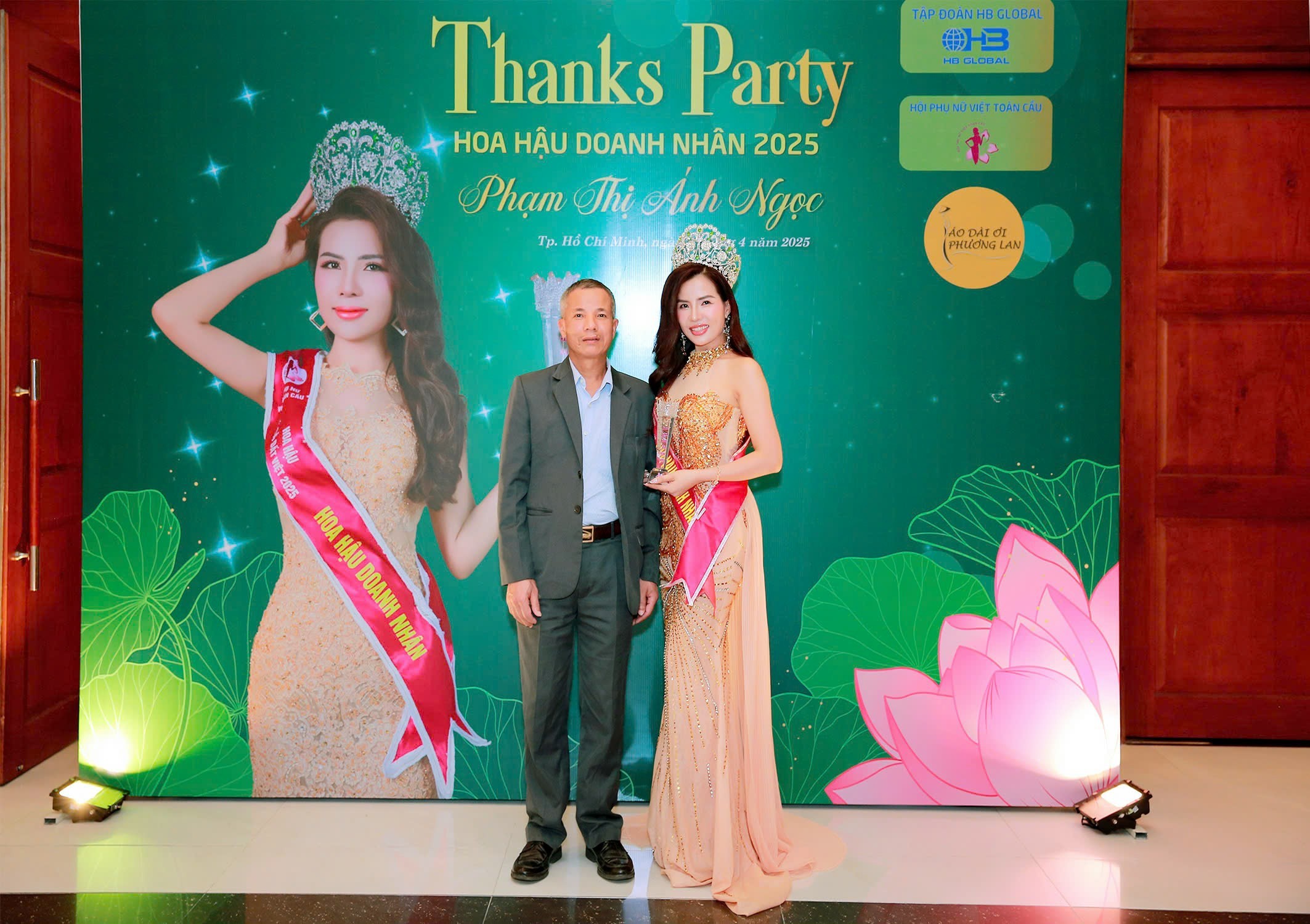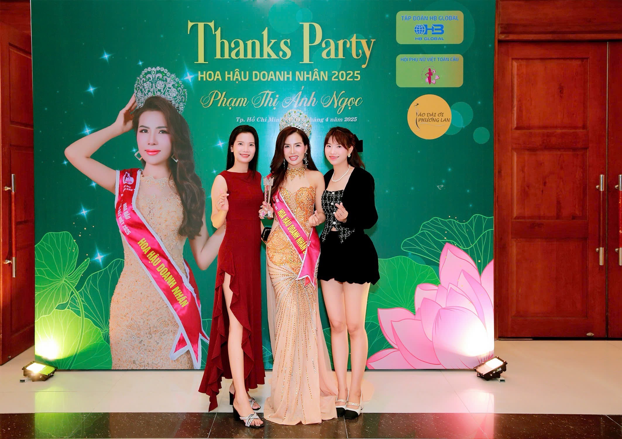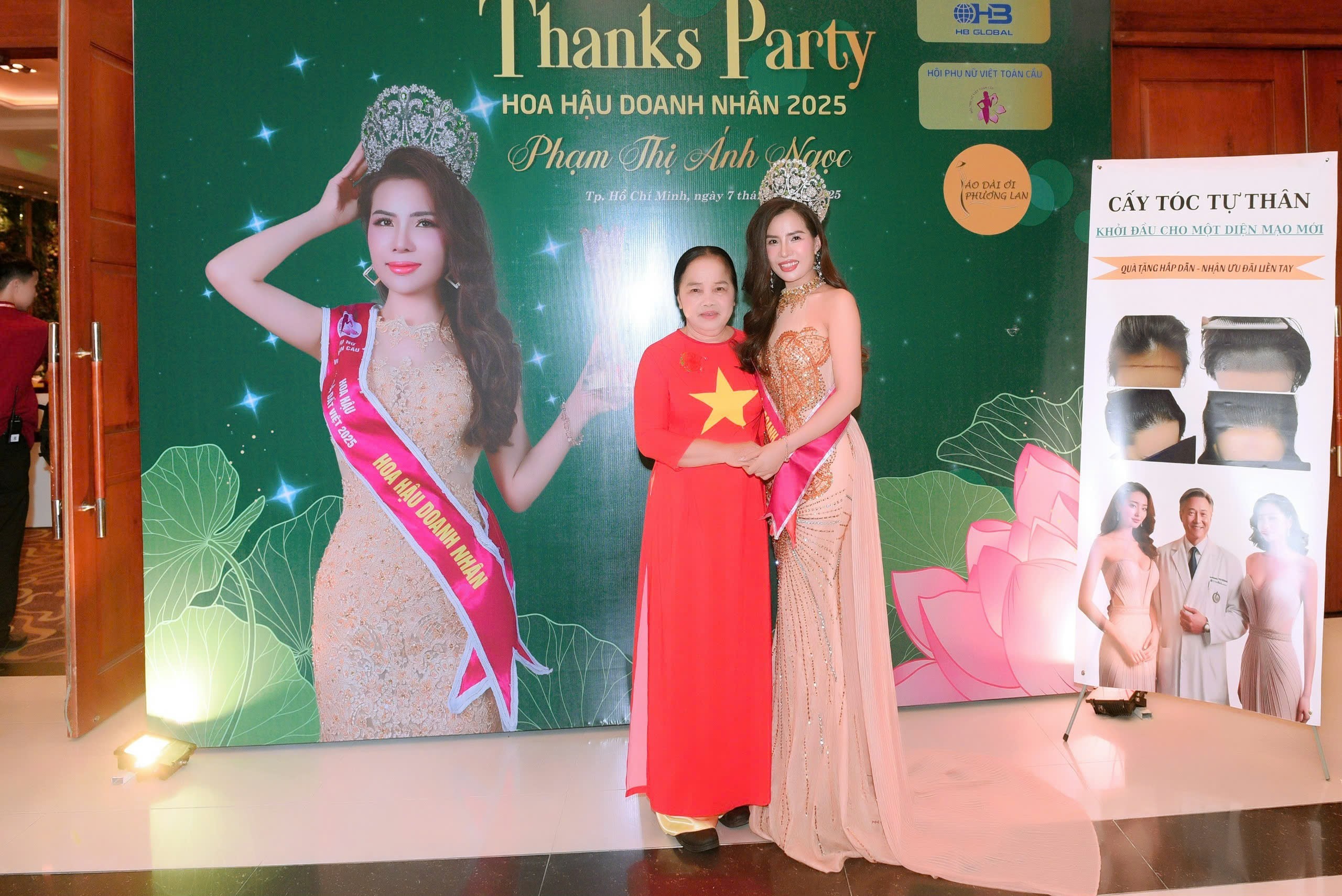 Có mặt tại buổi tiệc, bà Phạm Thủy - Trưởng Ban Tổ chức đồng thời là Chủ tịch Hội Phụ nữ Việt toàn cầu đã gửi lời chúc mừng tới tân Hoa hậu Phạm Thị Ánh Ngọc và chúc cô luôn có thêm nhiều thành tựu đáng nhớ trong sự nghiệp và cuộc sống.