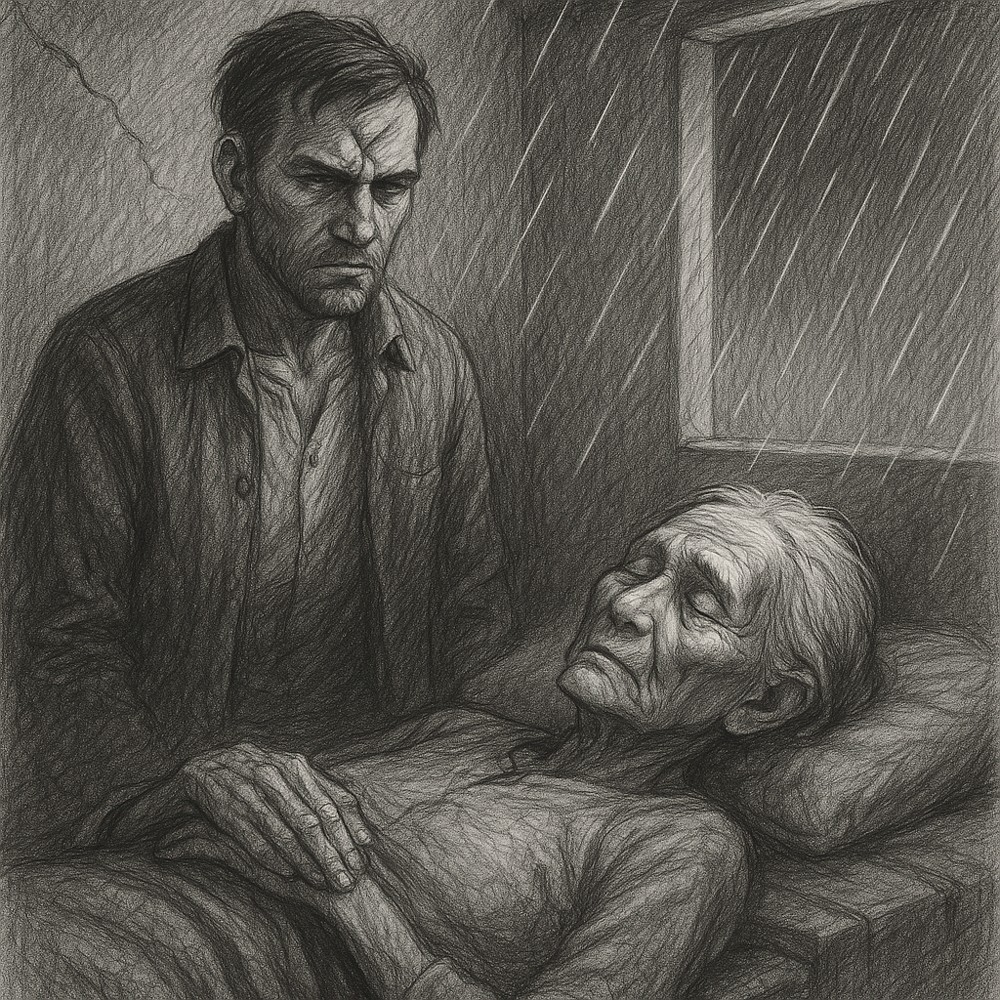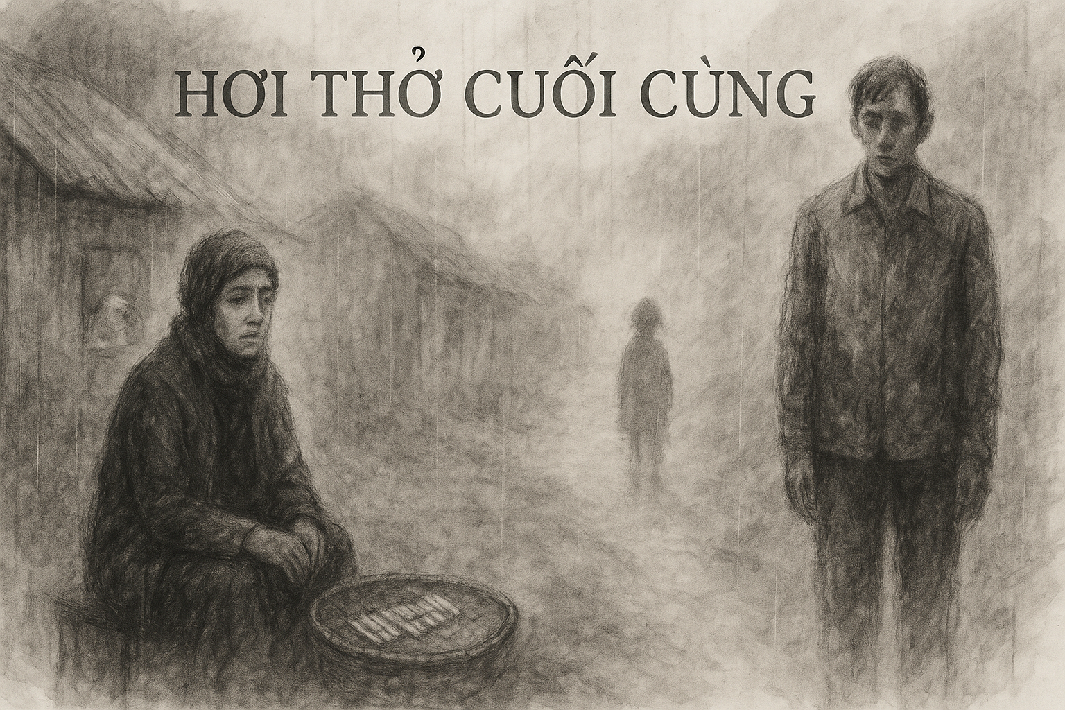 Trong gian nhà xám nhòe ký ức, mẹ - một thân thể tàn tro tên Còng - nằm đó, giữa ranh giới "chưa đi" và "sắp". Không chết, nhưng rất gần. Bà lặng lẽ như thể đã thành một phần của nền nhà. Đôi môi rụng xuống một câu: "Tiếc là mẹ chưa có cháu."