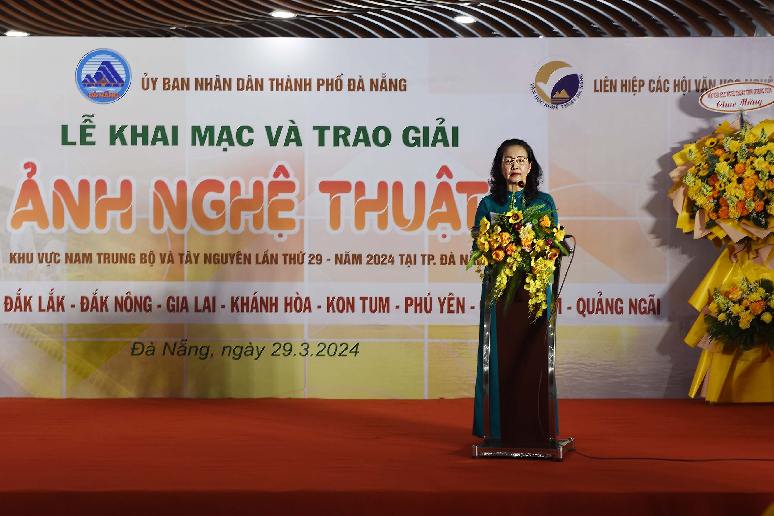 Phát biểu tại buổi lễ, Chủ tịch Hội NSNA Việt Nam Trần Thị Thu Đông chi biết: "Khu vực Nam Trung Bộ & Tây Nguyên gồm 10 tỉnh với 130 NSNA là hội viên của Hội NSNA Việt Nam, chưa tính những người chơi ảnh tự do rất lớn ở mọi lứa tuổi khác nhau. Có thể nói lực lượng nhiếp ảnh Khu vực Nam Trung Bộ và Tây Nguyên tuy không nhiều lắm nhưng có bề dày thành tích, có nhiều nghệ sĩ thành danh thuộc tốp đầu cả nước. Năm 2023 vừa qua, trong khu vực có 01 NSNA vinh dự được nhận giải thưởng Nhà nước về VHNT là NSNAVN Lê Vấn thuộc tỉnh Quảng Nam."