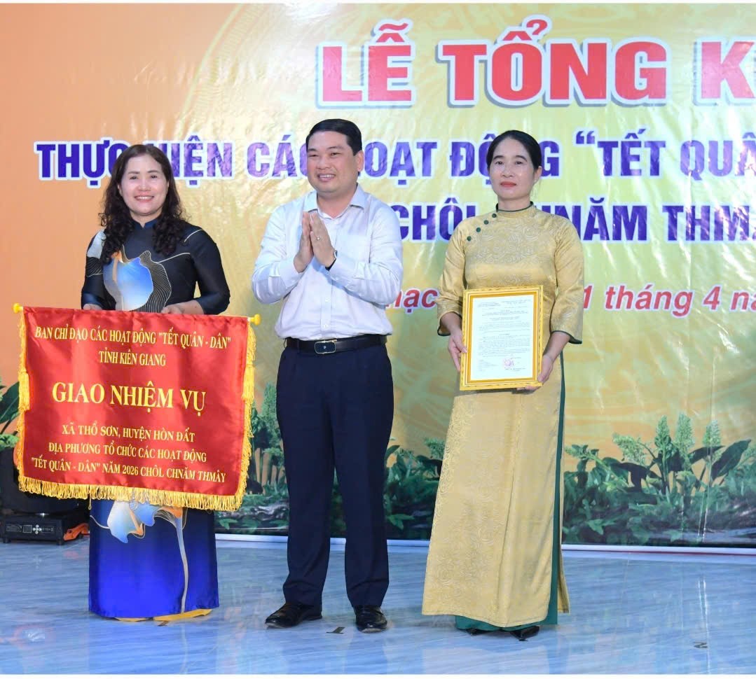Không chỉ dừng lại ở kết quả một năm, chương trình còn hướng đến tương lai khi tại buổi lễ, Ban Chỉ đạo tỉnh đã trao quyết định và cờ giao nhiệm vụ tổ chức “Tết Quân - Dân” năm 2026 cho xã Thổ Sơn, huyện Hòn Đất. Điều đó khẳng định tinh thần tiếp nối và lan tỏa giá trị chương trình trên địa bàn toàn tỉnh.