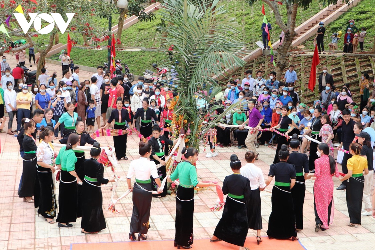 Sau phần lễ, đồng bào dân tộc Thái đen đã cùng nhau vui chơi bên không gian hội với điệu múa “tăng pẳng”, trò diễn “ma cang cói”, “Thuồng luồng uống nước”, “Voi uống nước”, “Người Xá hút thuốc”, “Ma cà rồng ăn ếch”...