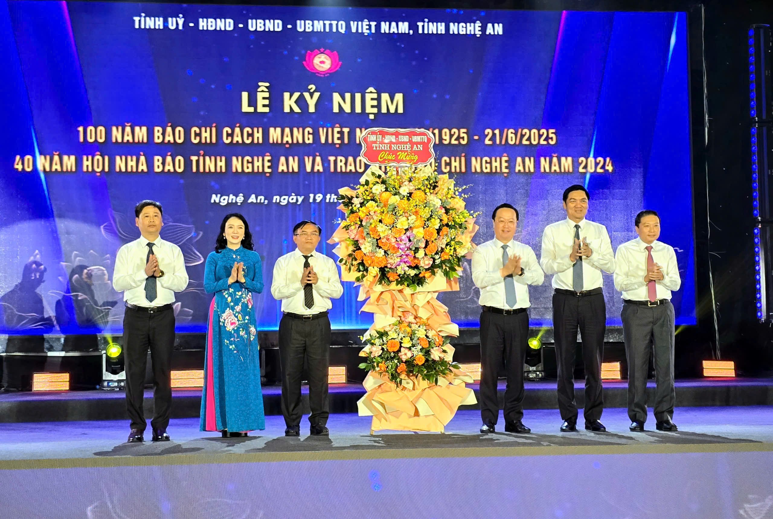 Thay mặt lãnh đạo tỉnh, Chủ tịch UBND tỉnh Lê Hồng Vinh đã tặng Hội Nhà báo Nghệ An bức trướng mang dòng chữ: “Hội Nhà báo Nghệ An - 40 năm đoàn kết, đổi mới, phát triển vì sự nghiệp báo chí cách mạng Việt Nam”. Trong phát biểu chúc mừng, đồng chí Lê Hồng Vinh khẳng định: Báo chí cách mạng đã và đang đóng vai trò quan trọng trong sự nghiệp cách mạng, kháng chiến, kiến thiết và phát triển đất nước. Báo chí Nghệ An, với truyền thống vẻ vang, luôn là lực lượng xung kích trên mặt trận tư tưởng - văn hóa, góp phần xây dựng khối đại đoàn kết toàn dân và thúc đẩy phát triển kinh tế - xã hội của tỉnh Nghệ An.