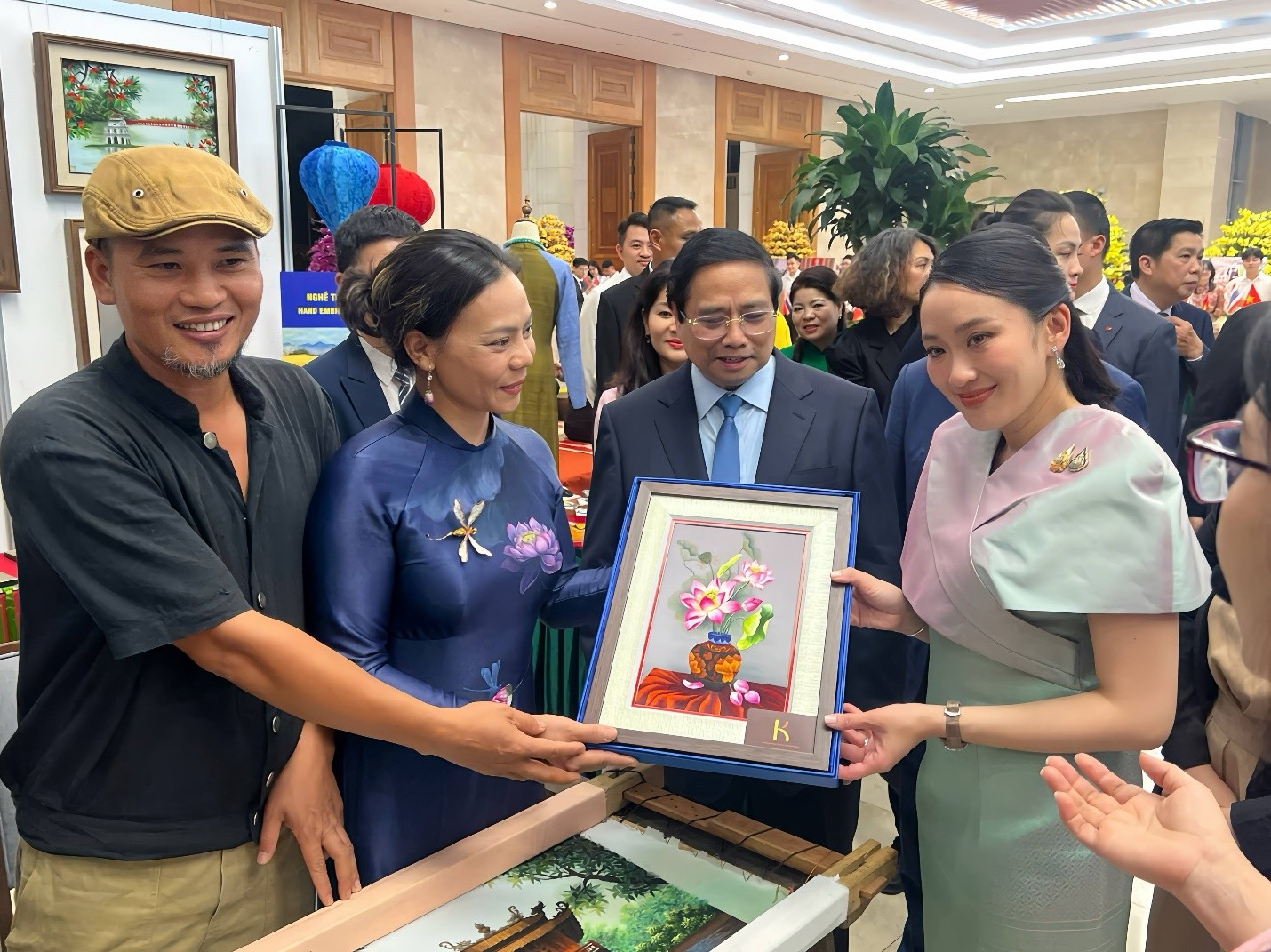 Đặc biệt, mới đây chị Hằng vinh dự được giới thiệu sản phẩm và kỹ thuật thêu tay truyền thống Việt Nam trước Thủ tướng Chính phủ Phạm Minh Chính và Thủ tướng Thái Lan bà Paetongtarn Shinawatra trong chuyến thăm chính thức Việt Nam. Đây không chỉ là cơ hội để quảng bá vẻ đẹp nghề thêu ra thế giới, mà còn là sự ghi nhận cho những nỗ lực bền bỉ của chị trong suốt hơn hai thập kỷ gìn giữ và làm mới nghề truyền thống.