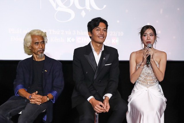 Từ trái qua: NSUT Phú Đôn, diễn viên Quang Tuấn và Nguyên Thảo tại sự kiện.