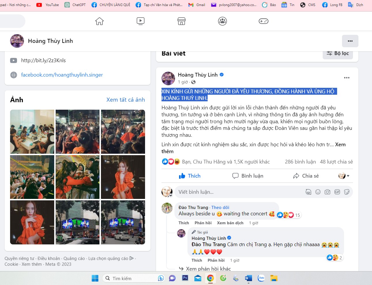 “XIN KÍNH GỬI NHỮNG NGƯỜI ĐÃ YÊU THƯƠNG, ĐỒNG HÀNH VÀ ỦNG HỘ HOÀNG THUỲ LINH.