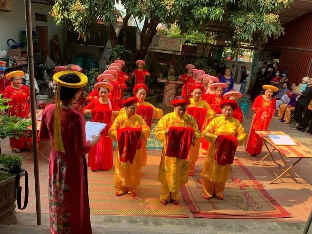 Địa phương chọn cử ít nhất 8 thanh niên khoẻ mạnh chưa vợ, 8 phụ nữ chưa chồng (lệ cũ) tham gia vào đội rước kiệu. Trước đó, đội tế nữ quan khoảng ba chục phụ nữ được tập luyện thành thục. Nghi thức rước kiệu, từ nơi ở của Mẫu tại Nhà thờ họ Hoàng rước sang trình với Thành Hoàng làng tại Đình làng gần đó và rước về Phủ trong sự chứng kiến của các đại biểu, đông đảo nhân dân và du khách. Sau đó là nghi thức dâng hương Thánh Mẫu, một phần nghi lễ rất quan trọng tại các đền thờ Mẫu. Đại biểu khách mời, lãnh đạo địa phương, xã bạn, nhân dân và du khách đến với lễ hội bày tỏ sự tri ân thành kính dâng lên Mẫu những mâm phẩm vật (lễ chay, lễ chín), những nén hương thơm, đoá hoa ngạt ngào hương sắc mong muốn nhận được sự phù hộ độ trì của Mẫu, nguyện cầu cho quốc thái dân an, mùa màng bội thu, mọi nhà ấm no hạnh phúc, bình yên may mắn, nhiều tài lộc…