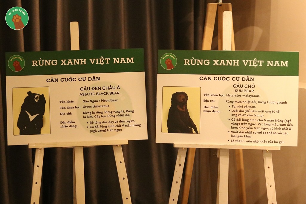 Mỗi bức tranh đều thể hiện nhận thức và góc nhìn của các em về chủ đề bảo vệ gấu trước nạn nuôi nhốt, lấy mật trái phép. Trong khu trưng bày tranh, ban tổ chức cũng bố trí các bảng infographic nhằm cung cấp thông tin cơ bản về hai loài gấu đang được bảo vệ tại Việt Nam - gấu chó và gấu ngựa.