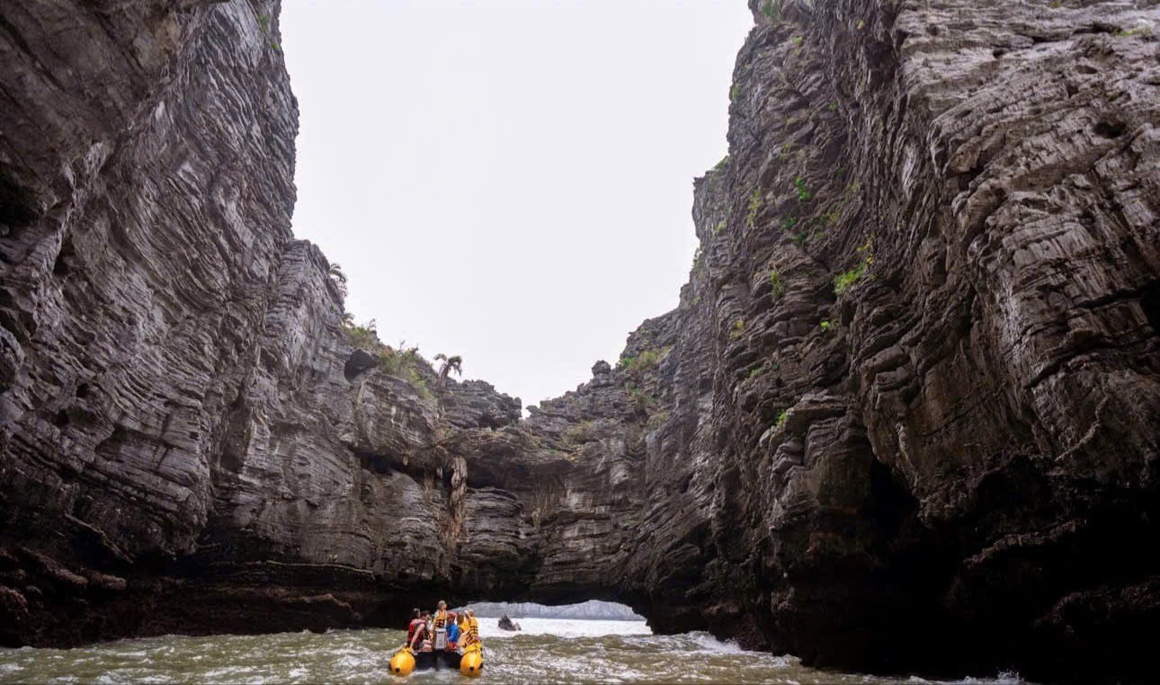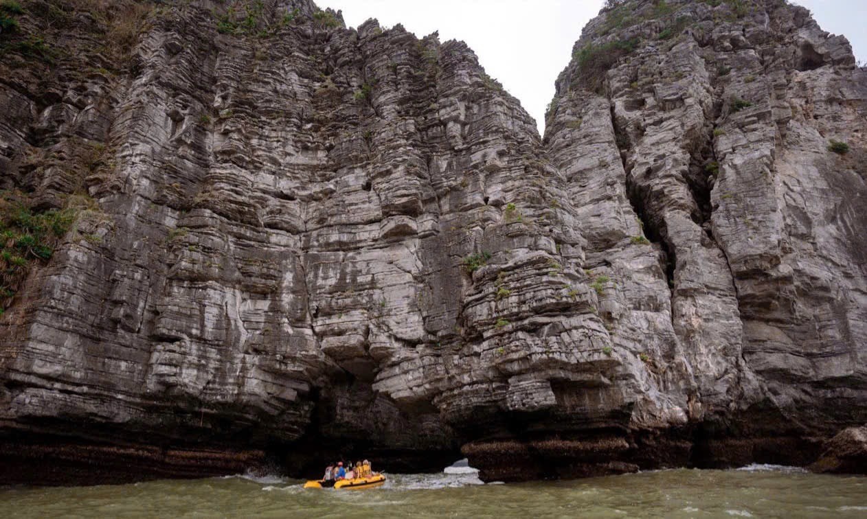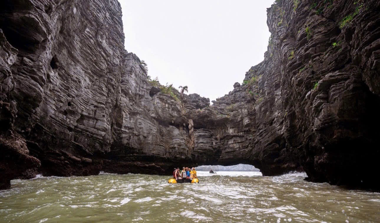 Giếng Trời - nơi chỉ có thể tiếp cận bằng xuồng nhỏ - hiện ra như một kho báu bị quên lãng. Những vách đá dựng đứng ôm trọn một “vòm trời” xanh biếc, chỉ có tiếng sóng biển va vào nhau trong không gian vọng lại.