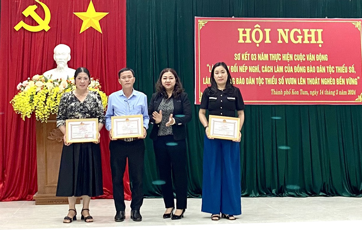 Thực hiện chỉ đạo của Thành ủy, các cơ quan, đơn vị, địa phương đã tích cực, chủ động làm tốt công tác tuyên truyền, vận động người đồng bào DTTS tập trung phát triển kinh tế, du lịch gắn với bảo tồn, phát huy giá trị văn hoá. Đặc biệt tuyên truyền trực tiếp thông qua các buổi chào cờ sáng thứ 2 hàng tuần tại nhà rông các thôn (làng), tuyên truyền trên các phương tiện thông tin đại chúng, hệ thống loa không dây của địa phương. Qua đó, nhận thức của người DTTS đã thay đổi rõ nét, đến nay đời sống vật chất, tinh thần của người dân được nâng lên.