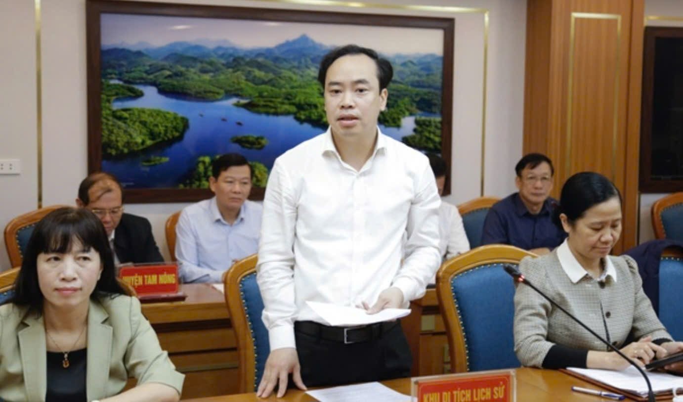 Lãnh đạo Ban Quản lý Khu Di tích lịch sử Đền Hùng phát biểu tại hội nghị