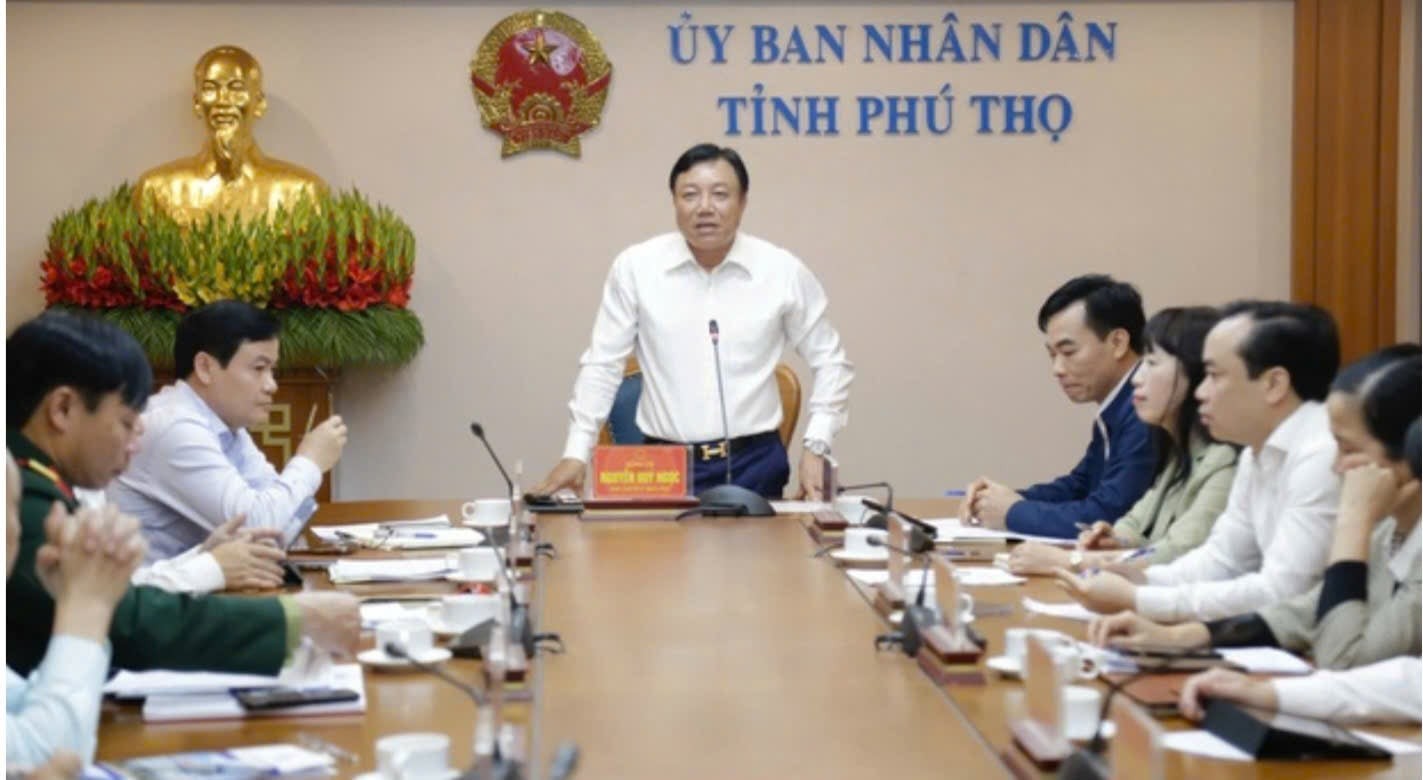Ông Nguyễn Huy Ngọc, Phó Chủ tịch UBND tỉnh -Trưởng Ban Tổ chức Giỗ Tổ Hùng Vương và Tuần Văn hóa - Du lịch Đất Tổ năm 2025 chủ trì hội nghị