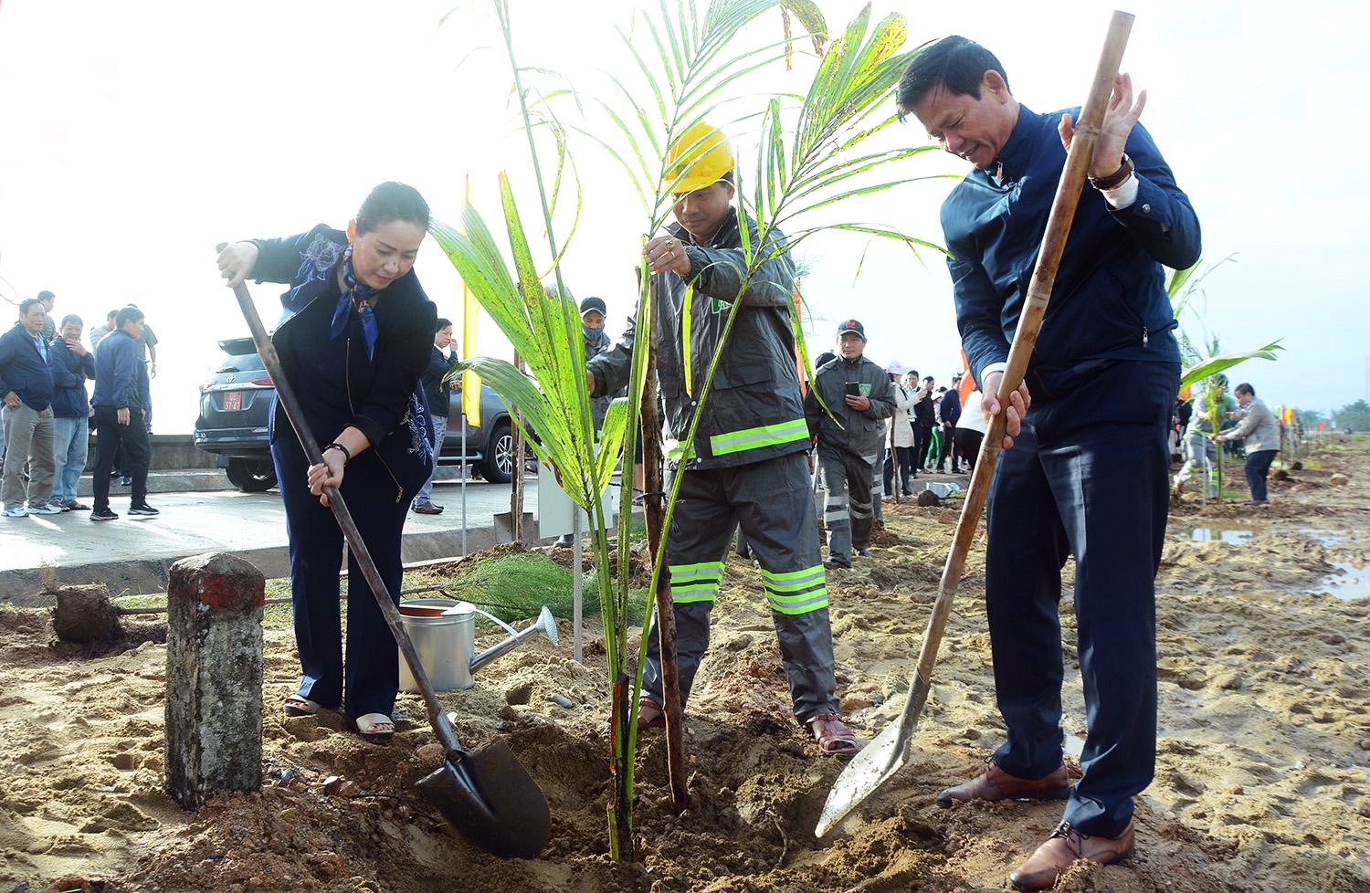 Lãnh đạo tỉnh và TP Quảng Ngãi tham gia trồng cây sau lễ phát động