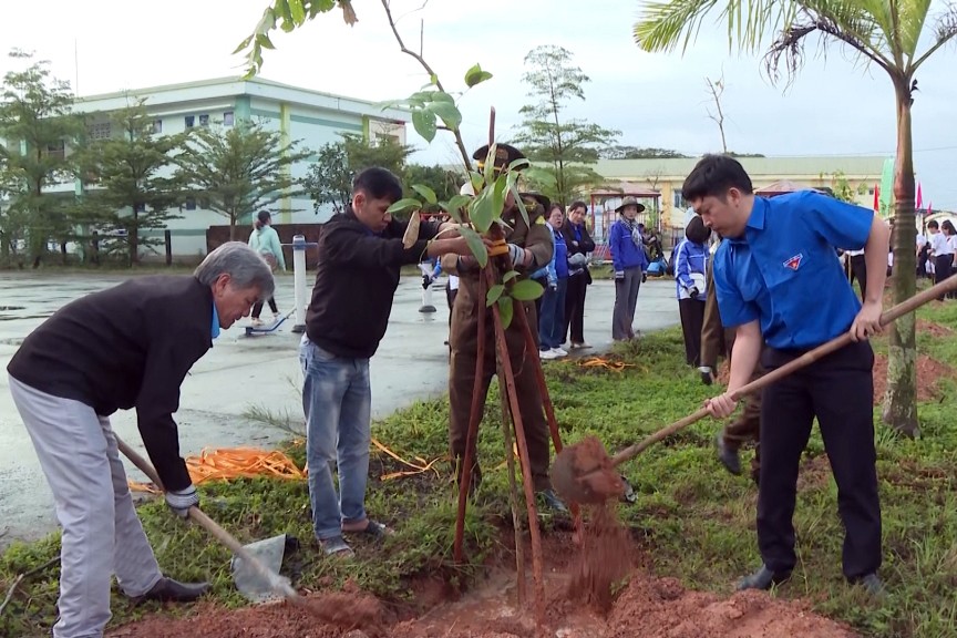 Sau buổi lễ, các đại biểu, đoàn viên, thanh niên đã ra quân trồng 115 cây bằng lăng tím tại Trung tâm Văn hóa xã Tịnh Thiện và tuyến đường đi công viên Tập Long, thôn Long Thành.