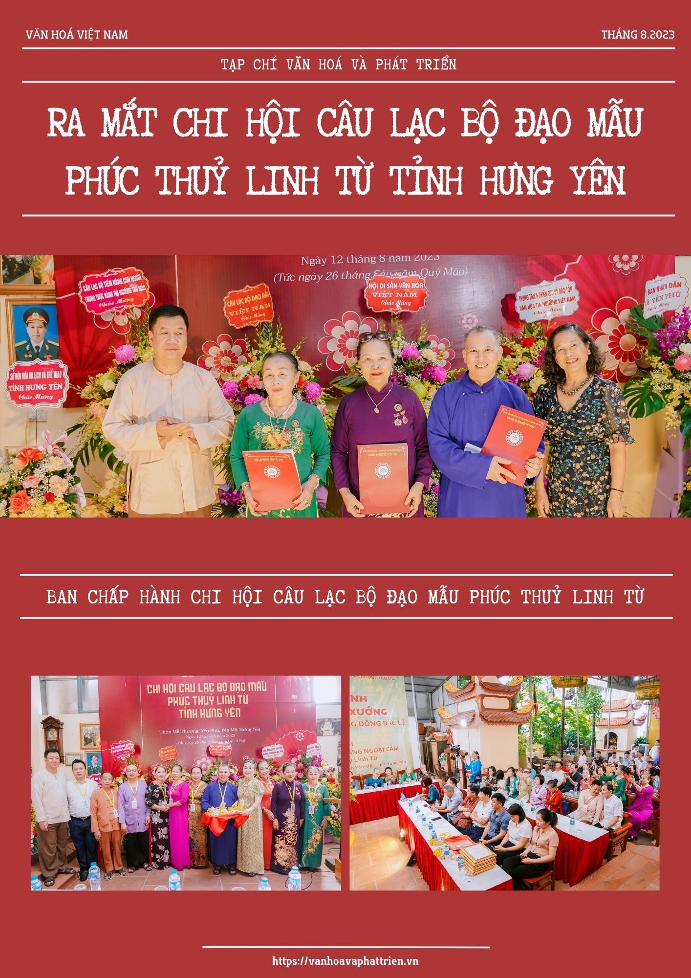 Ngày 12/8/2023 (tức ngày 26 tháng 6 âm lịch), tại đền Phúc Thuỷ Linh Từ (thôn Mễ Thượng, xã Yên Phú, huyện Yên Mỹ, tỉnh Hưng Yên), Trung tâm Nghiên cứu và Bảo tồn Văn hoá Tín ngưỡng Việt Nam; cùng Câu lạc bộ đạo Mẫu Việt Nam, long trọng tổ chức lễ ra mắt Chi hội Câu lạc bộ đạo Mẫu Phúc Thuỷ Linh Từ tỉnh Hưng Yên.